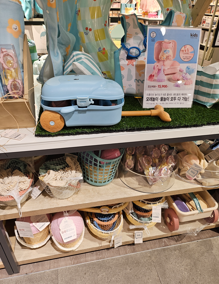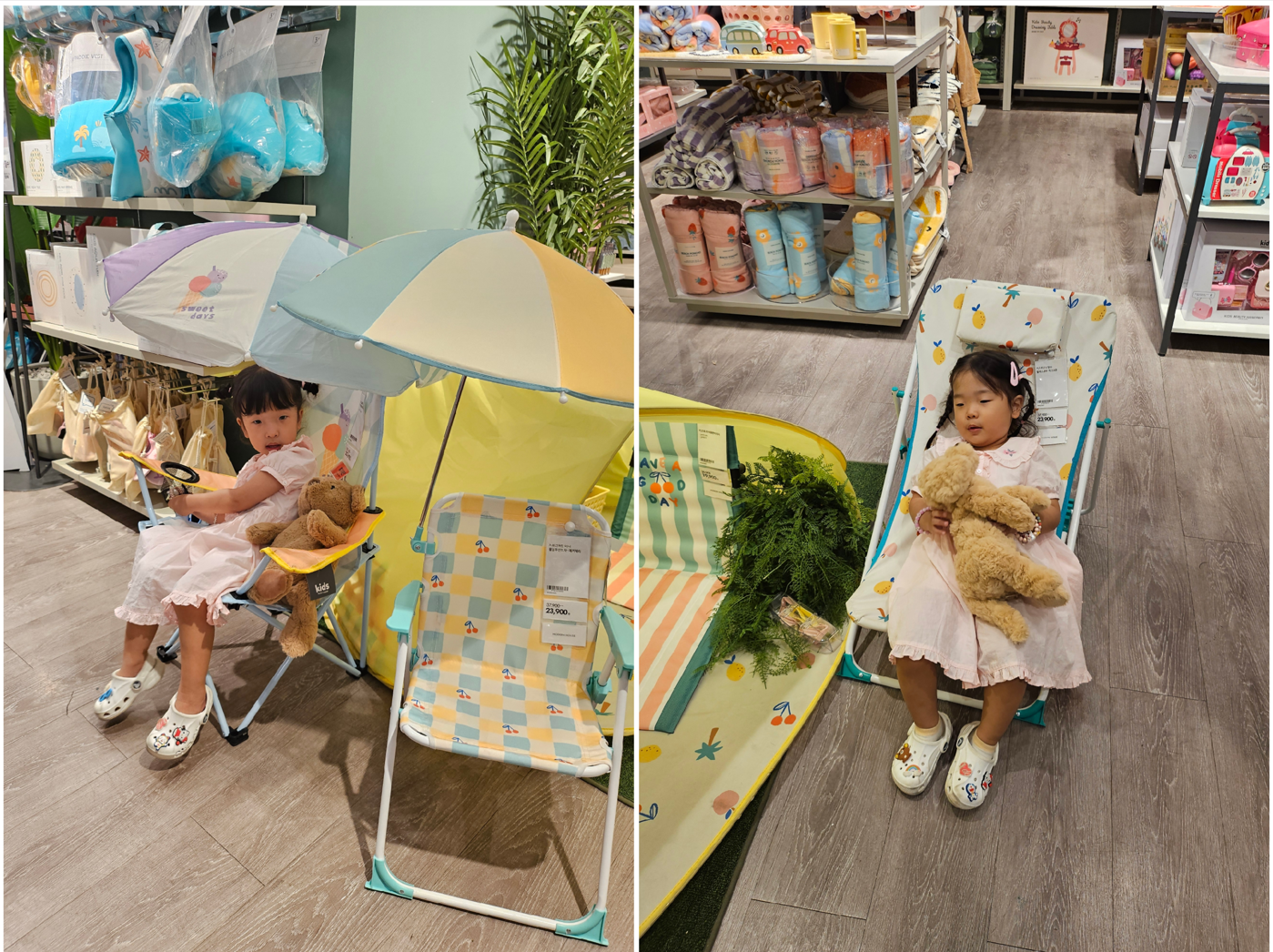아기자기한 미니 텐트, 꼬마 캠핑의자, 모래놀이 세트, 뽀송뽀송 타올, 물놀이 튜브까지 종류도 어마어마했어요.