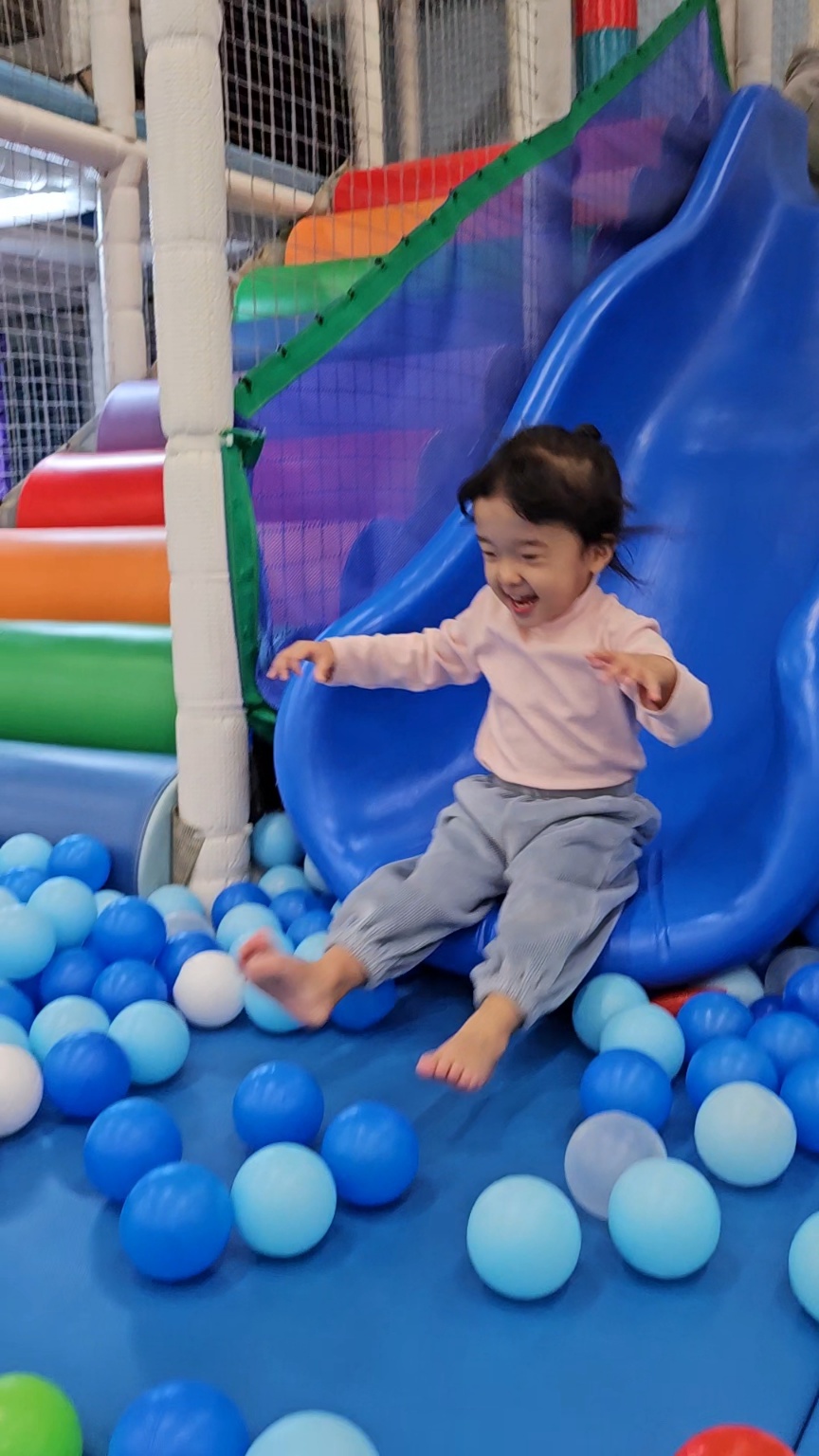 쌍둥이들은 미끄럼틀을 타고 볼풀로 빠지는 걸 반복하며 시간 가는 줄 몰랐어요! 😆