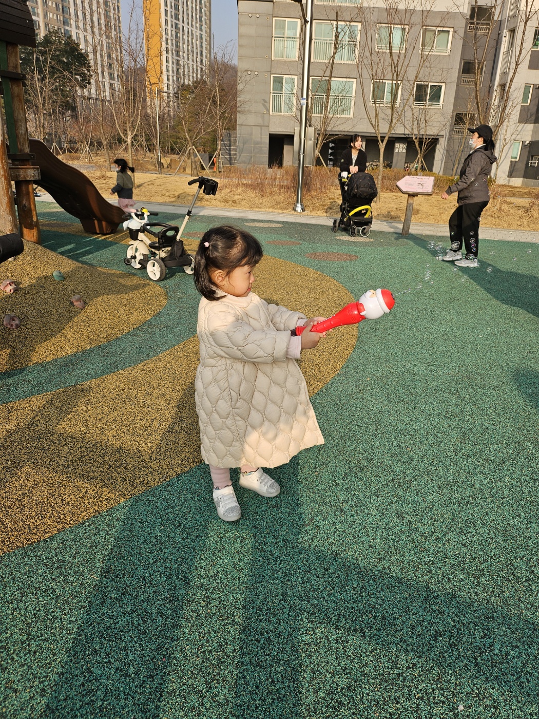 어린이집이 끝나고 쌍둥이들은 신이 나서 뛰어다니더라고요. 기대감을 한껏 안고, 집 놀이터로 향했습니다.