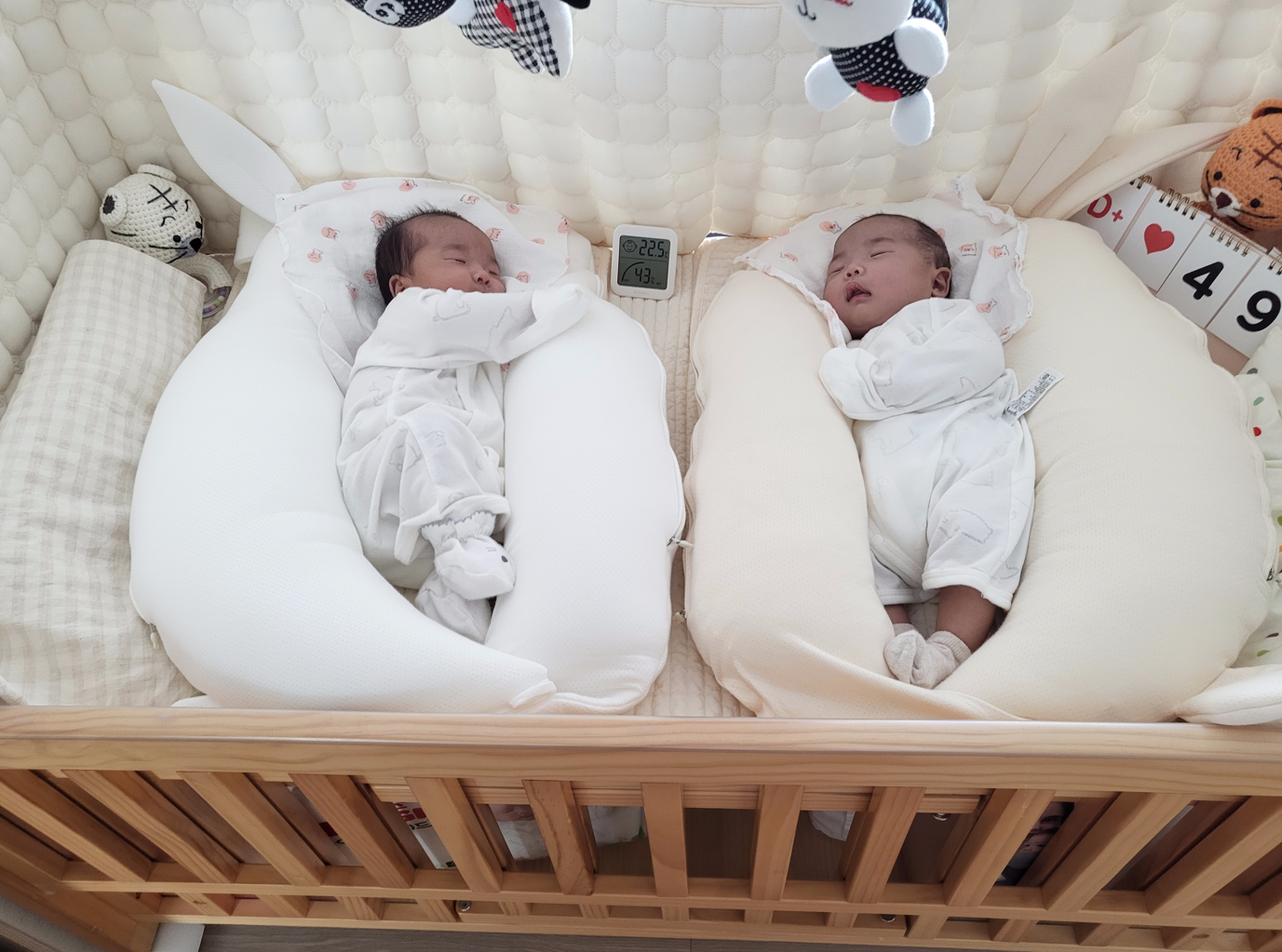 🛌 누워서 자는 둥이들, 엄마의 손이 자유로워졌어요