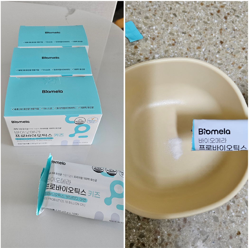검색 끝에 찾은 제품이 바로 바이오메라 키즈 유산균이었고, 실제로 먹여보니 확실히 효과를 봤습니다!