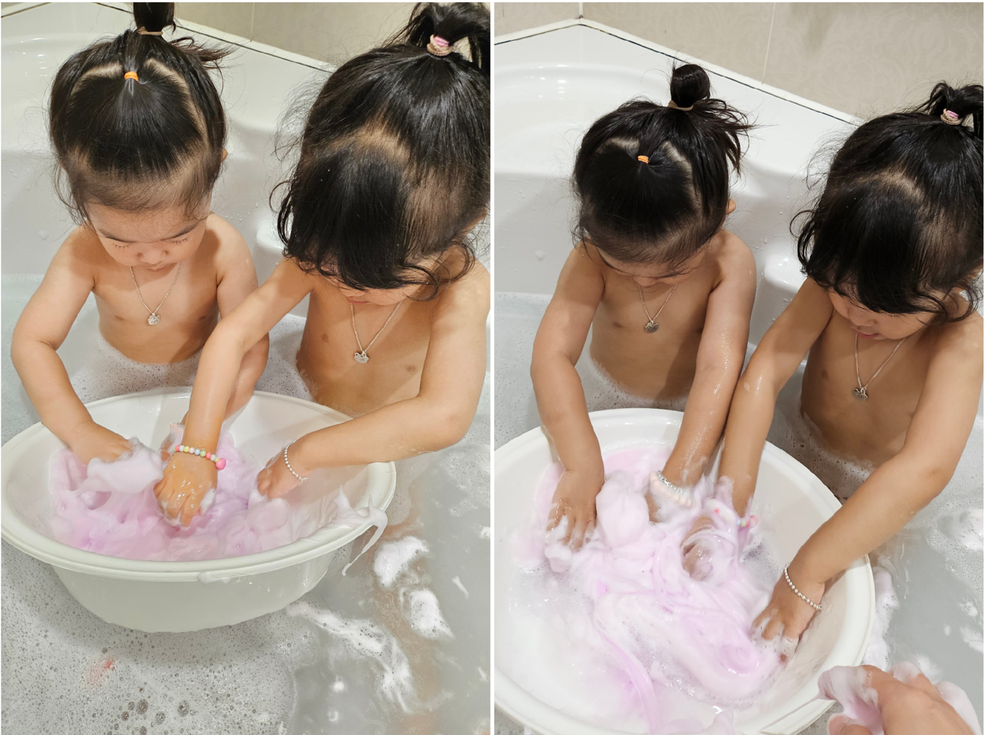 버블 입욕제+슬라임 놀이 자주 해줘야겠어요.