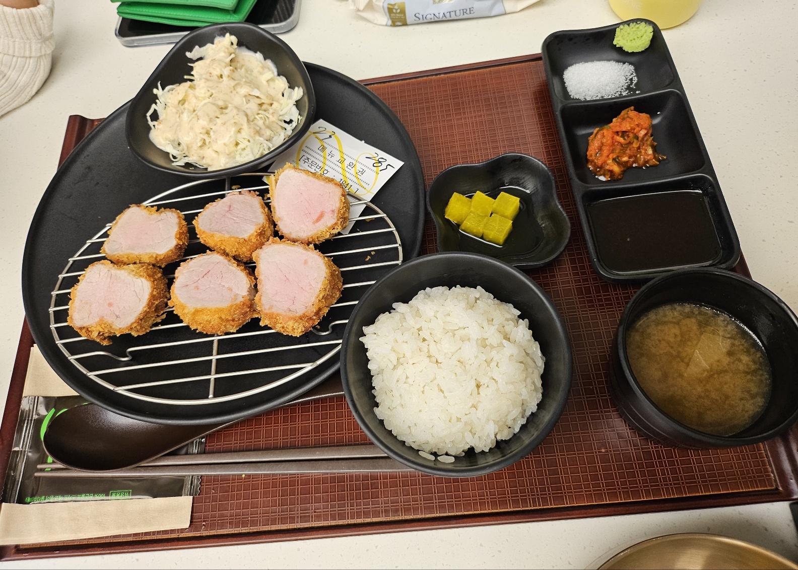 쌍둥이들은 '시키카츠'에서 히레카스를 골랐어요. 부드럽고 바삭한 고기 식감에 아이들이 정말 잘 먹더라고요. 밥을 남기지 않고 다 먹는 걸 보니 얼마나 맛있었는지 느껴졌죠.