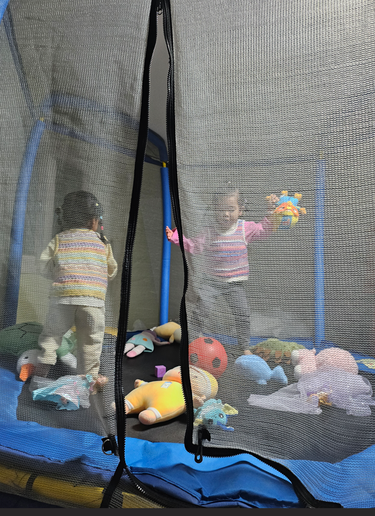 커다란 트램폴린 위에서 채하 언니랑 같이 껑충껑충~