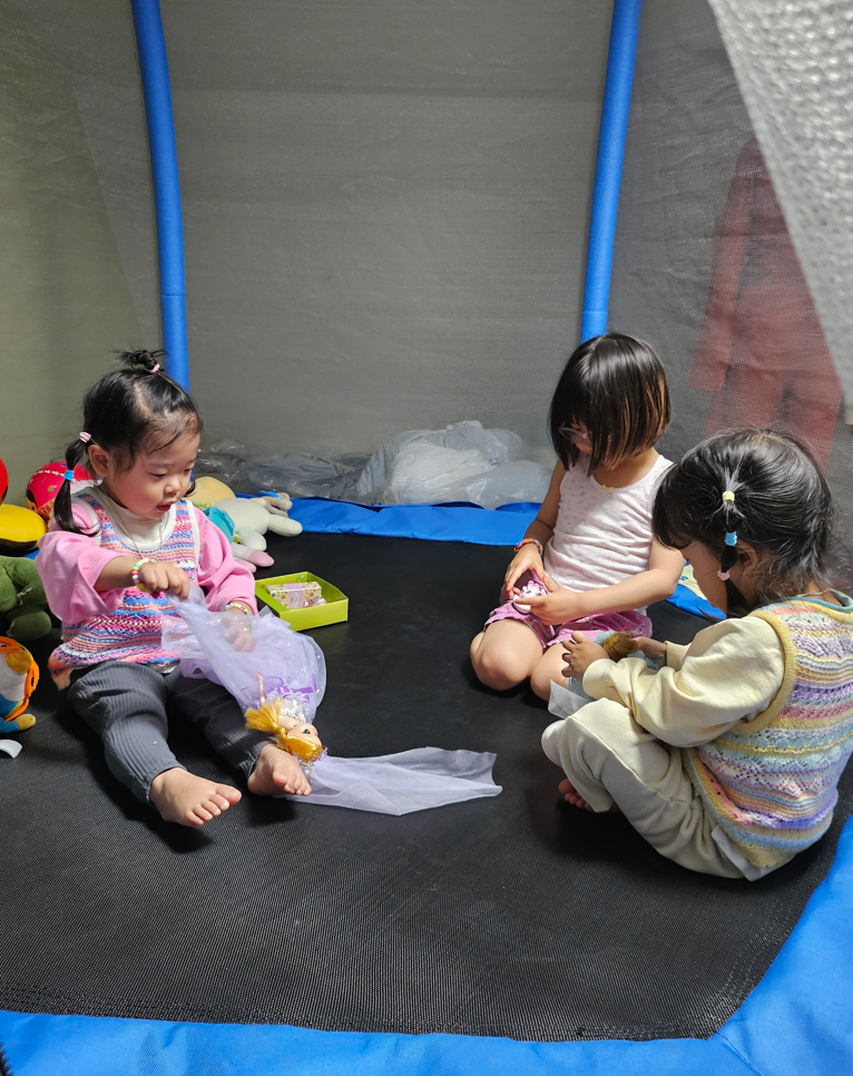 커다란 트램폴린 위에서 채하 언니랑 같이 껑충껑충~